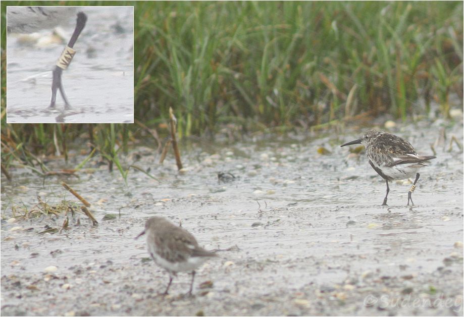 Es folgt ein Alpenstrandläufer mit Farbring: